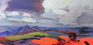 “Storm a top Mount Washington, 2018” an oil on wood by Kale Baker , an NECC art and design alum, will be on exhibit in The Linda Hummel-Shea ArtSpace.