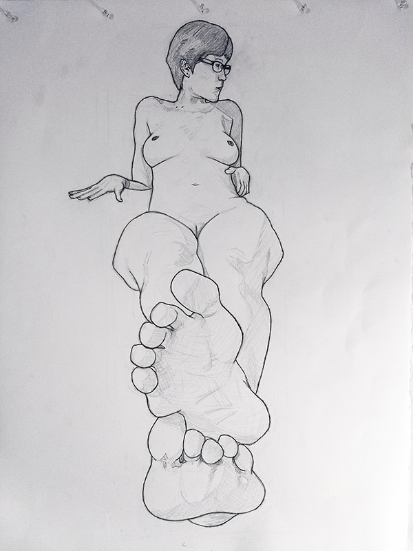 “Foreshortened Female Model 2018” a 30 x 22 inch, charcoal on paper by Ryan Silva, an NECC art and design alumnus, will hang in the exhibit.