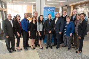 VIP’s take a photo with LHS senior Alexis Martinez (center) who was the student speaker at the NECC Early College Recognition Ceremony.