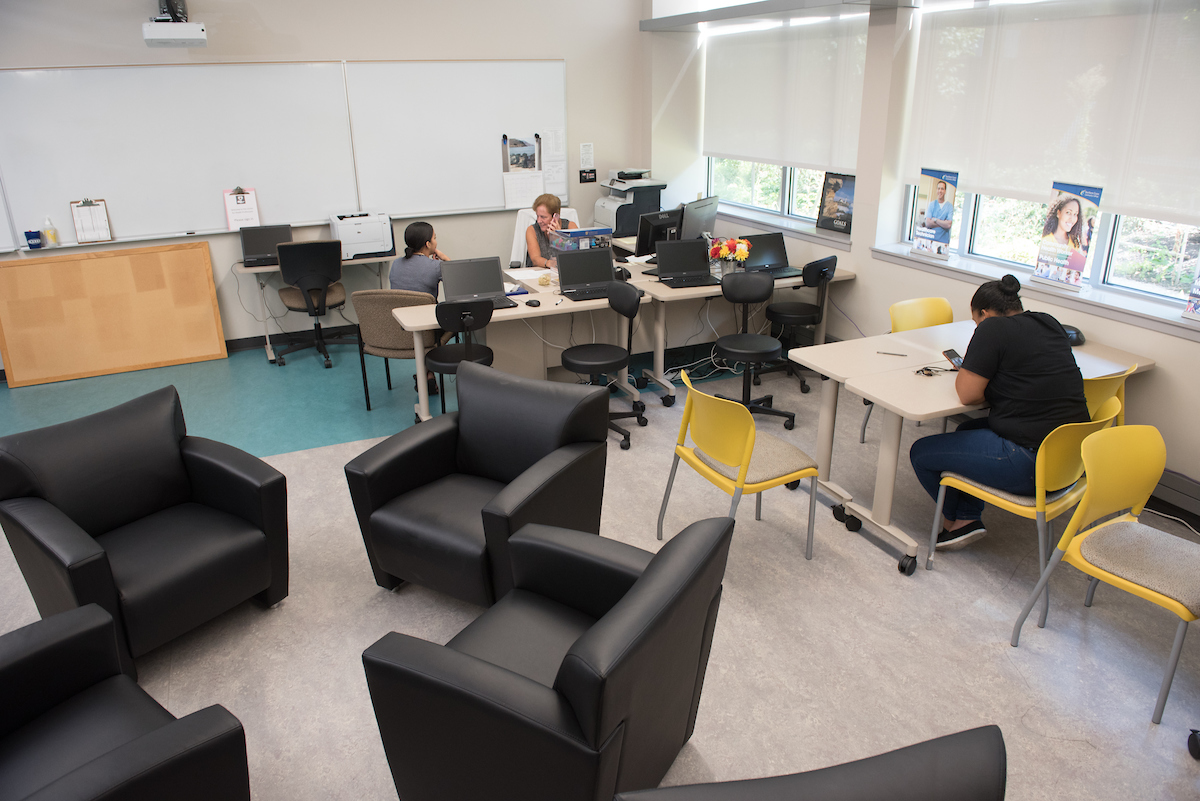 “The center is meant to be a warm and inviting place for our health students to meet other students, use a computer, print a paper, charge a cell phone, connect with faculty, or make themselves a peanut butter and jelly sandwich.