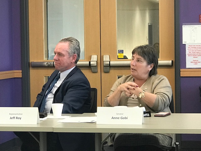 Members of the committee have been visiting the campuses of all Massachusetts community colleges and universities. Earlier in the day, they had toured UMass Lowell and Middlesex Community College.