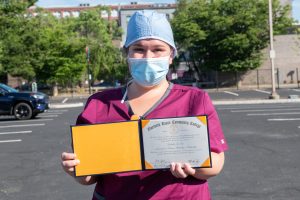 In June, graduates came to the Haverhill or Lawrence Campus to pick up a celebration package which included their cap, tassel, diploma, and special gifts from the college’s Alumni Association and Student Government Association. It was a festive celebration with music, balloons, the NECC Knight (NECC student trustee and 2020 graduate Courtney Morin), and lots of cheering staff and faculty.