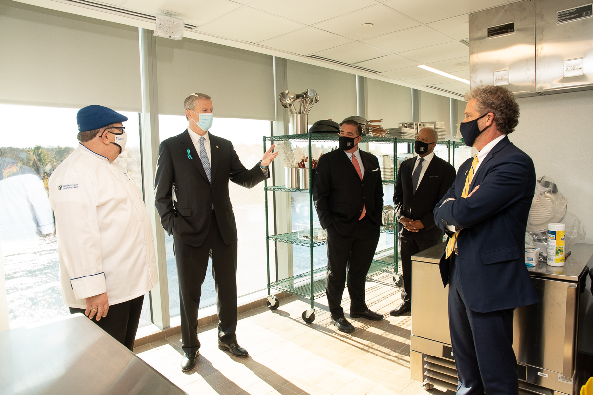 Denis Boucher, program manager of culinary and hospitality, gave the governor a tour of the facility, which will be home to credit programs, including our certificate in culinary arts and our associate degree in hospitality management, and noncredit culinary courses offered through Corporate & Community Education.