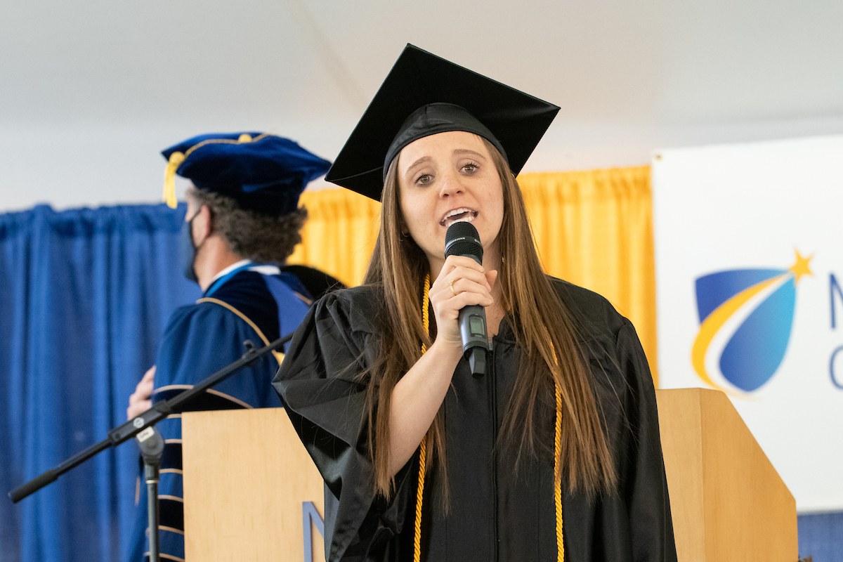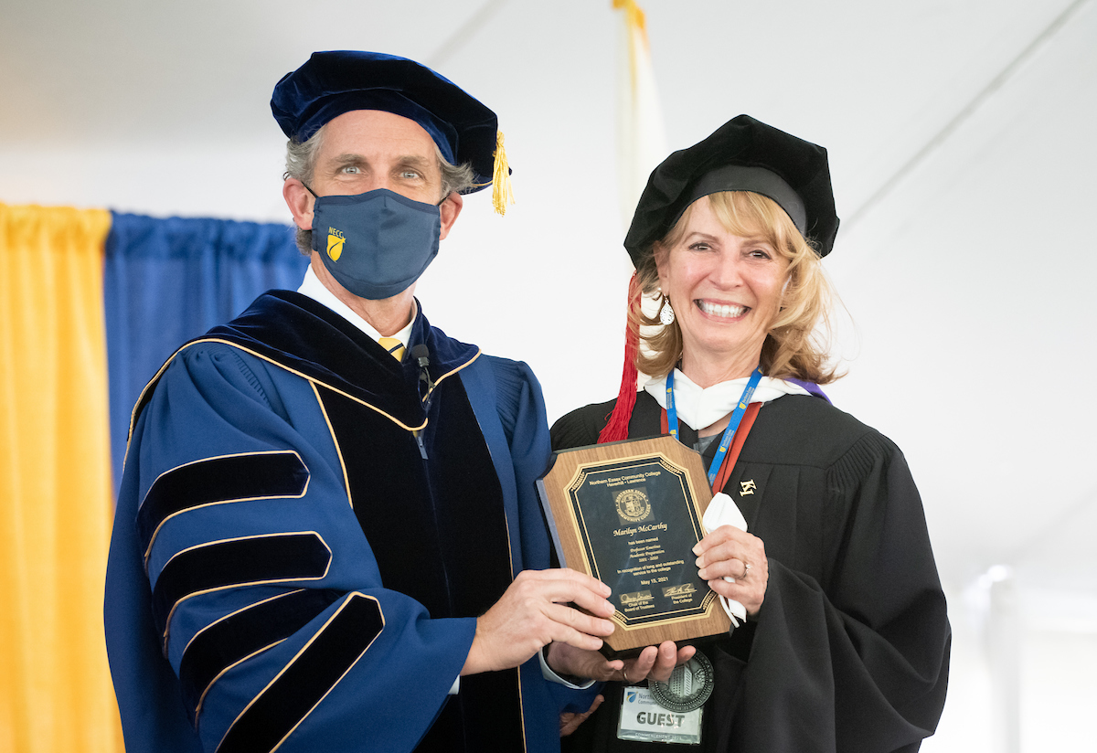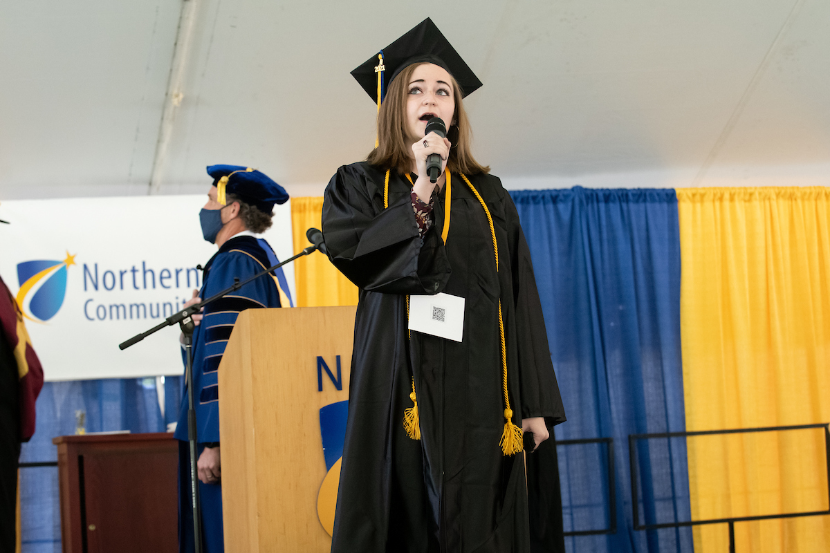 The ceremonies opened with the national anthem sung by graduates Alica Catalano, AA: General Studies: Music Option, High Honors, 2021, and Emily Forisso, AS: Early Childhood Education, High Honors, 2020.