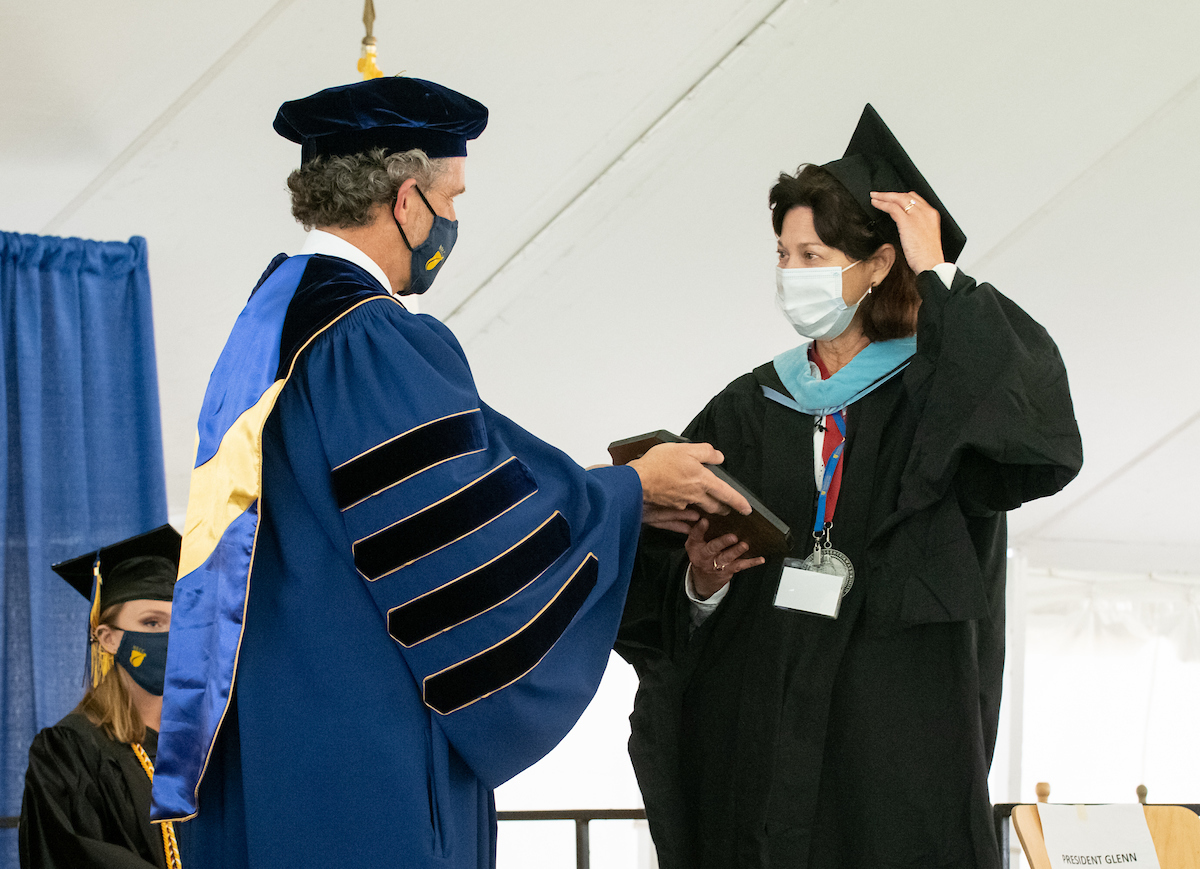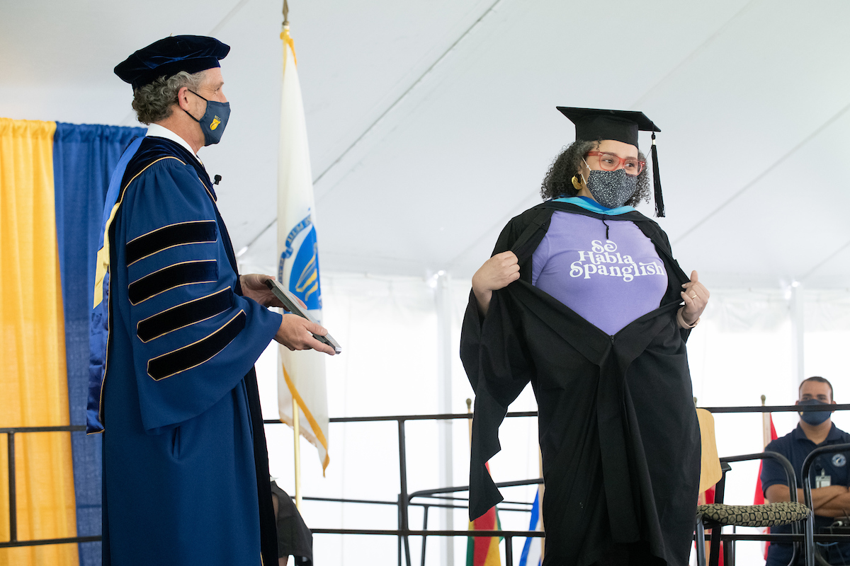 Rather than have one large graduation for all graduates, the college scheduled five socially-distanced ceremonies, organized by academic center. And 2020 graduates were included, since their graduation was virtual last year.