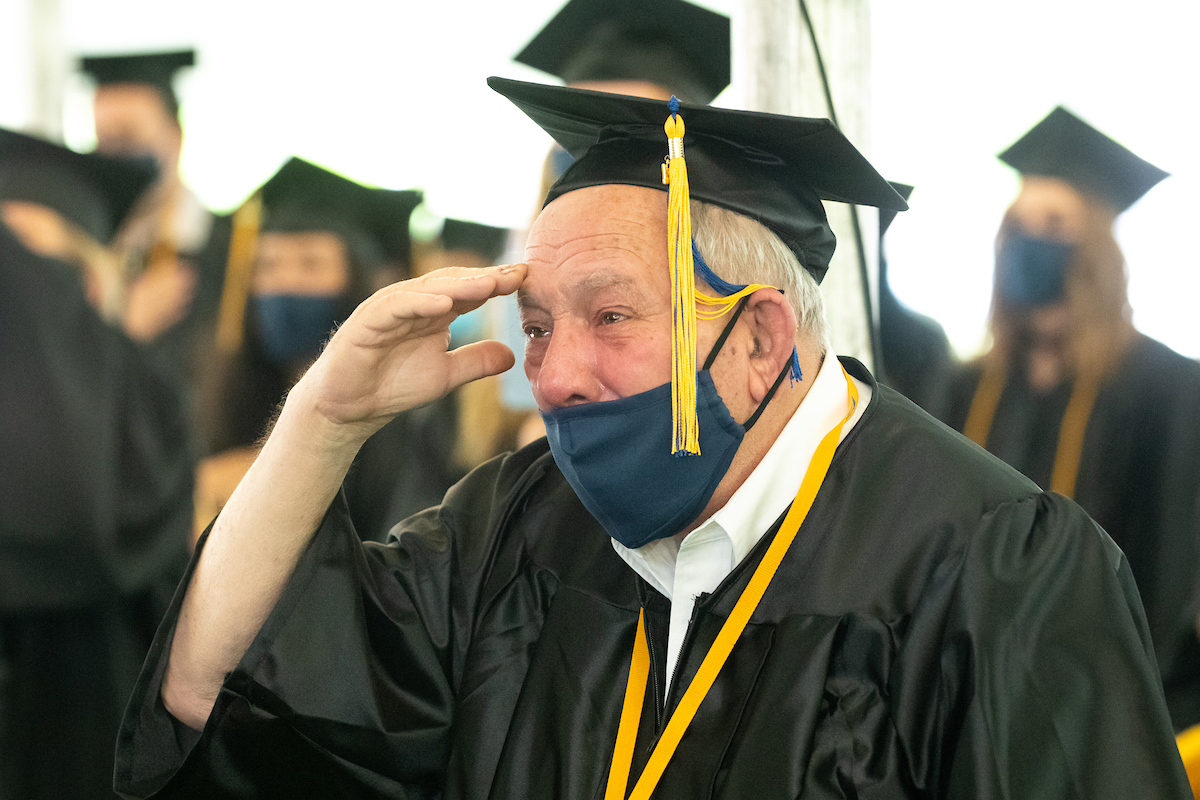 Over 1,300 graduates from 2020 and 2021 were celebrated and associate degrees and certificates from over 70 academic programs were awarded. Everyone was masked and there was 3 feet between graduates and 6 feet between guests, following state guidelines.
