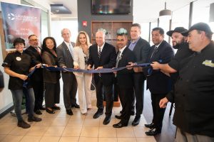 Left to right: Jessy Melo, Jessy’s Clean Meals; George Ramirez, Lawrence Partnership; Theresa Parks, MassDevelopment; Lane Glenn, NECC; Wendy Estrella, Lawrence Partnership; Mike Kennealy, Executive Office of Housing and Economic Development; Mayor Kendrys Vasquez, Lawrence; Senator Barry Finegold; Representative Marcos Devers; Danny Torres, El Encanto; Hilton Torres, El Encanto.