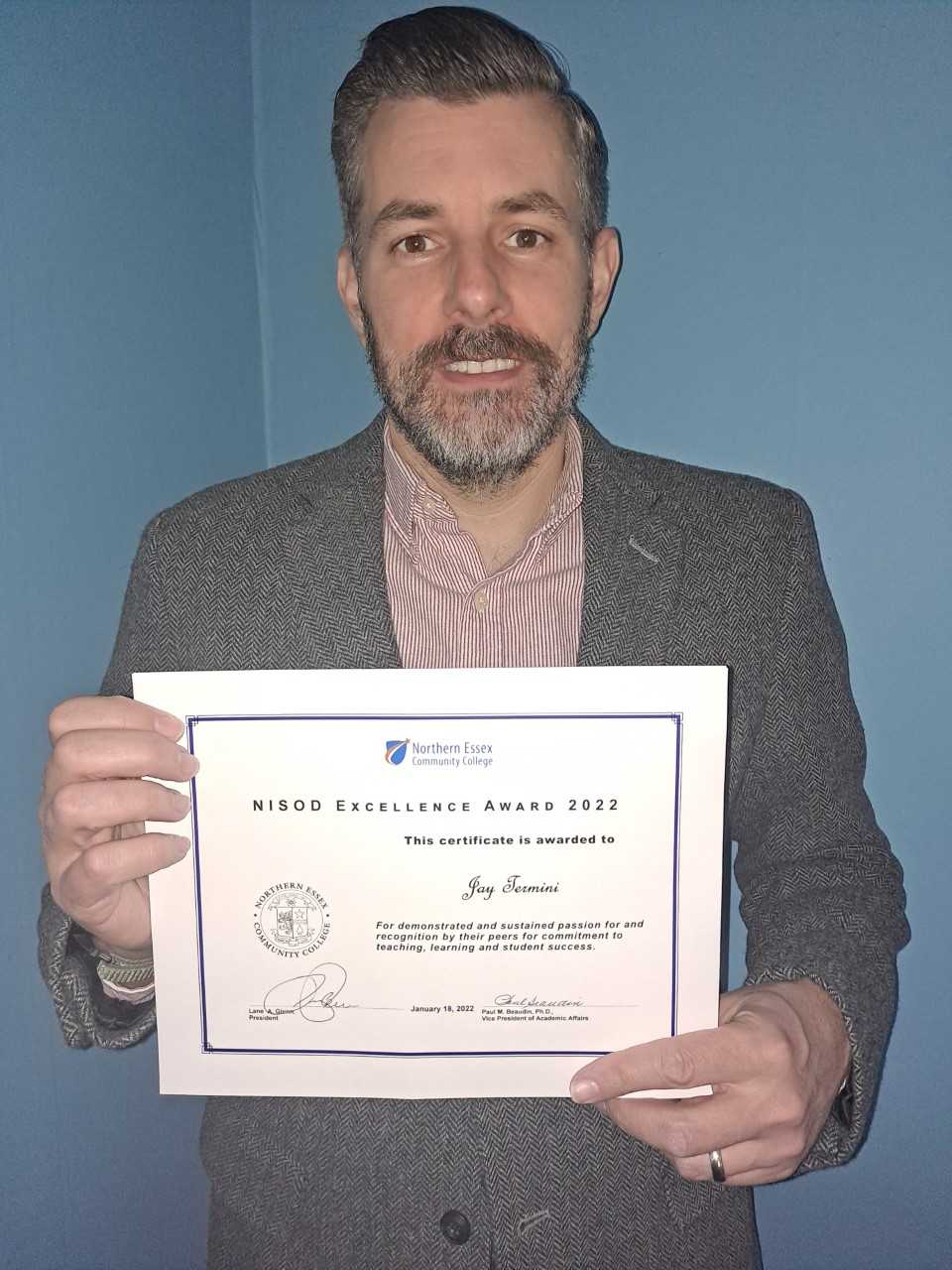 In nominating Jay Termini for the NISOD Award, Carolyn Knoepfler, dean of STEM Programs, cited his focus on connecting his students with employers. “He has been able to support scholarship/internship opportunities for students that lead to full-time employment in many cases.”