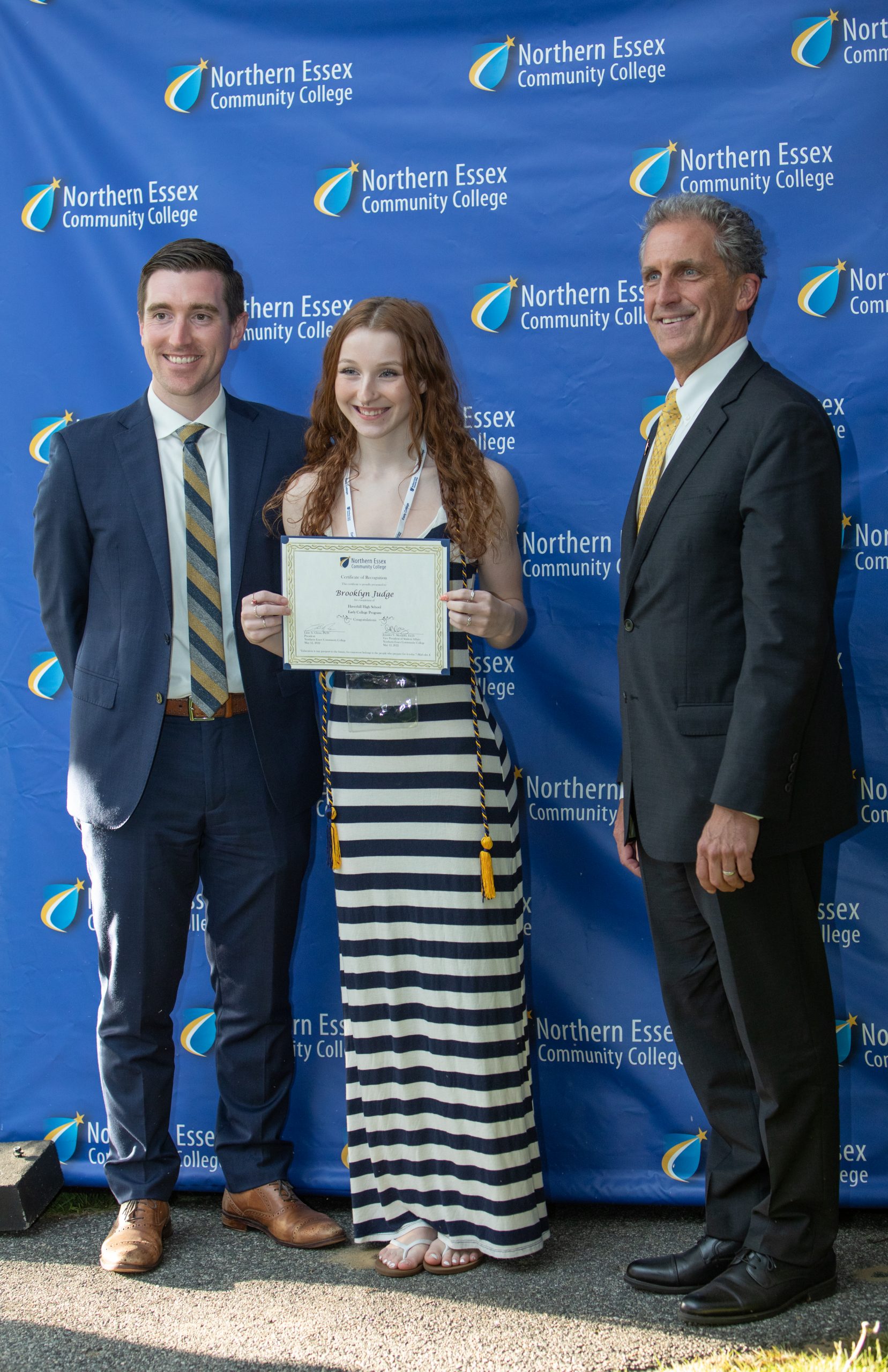 Five students are graduating with both associate degrees and their high school diplomas this year, having completed two full years of college while still in high school. That group includes Zoe Glenn, Amesbury, who earned an associate degree in business transfer with high honors; Blake Holcomb of Haverhill, General Studies: Health Specialization; Brooklin Joubert of Oxford, Liberal Arts with honors; Zachary Kaczor, Haverhill, Computer Science with high honors; and Maria Soracco of Newburyport, Chemistry, Physics, and Environmental Science with high honors.