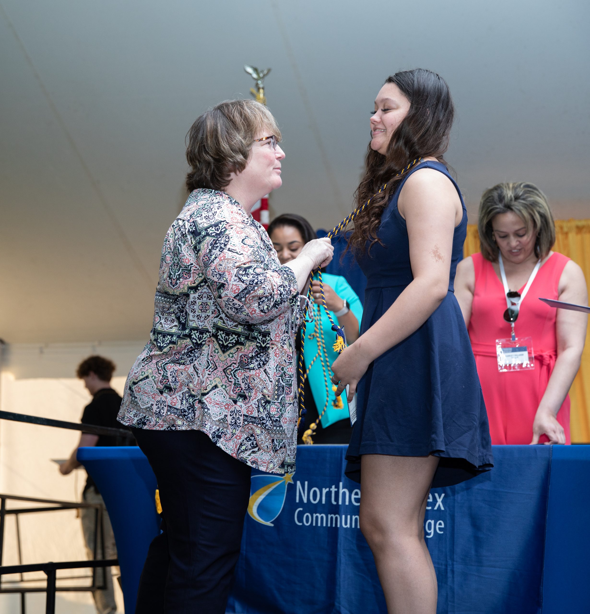 The students, along with their families, celebrated at a May 12 Early College Recognition Ceremony, held under a tent on Northern Essex’s Haverhill Campus.