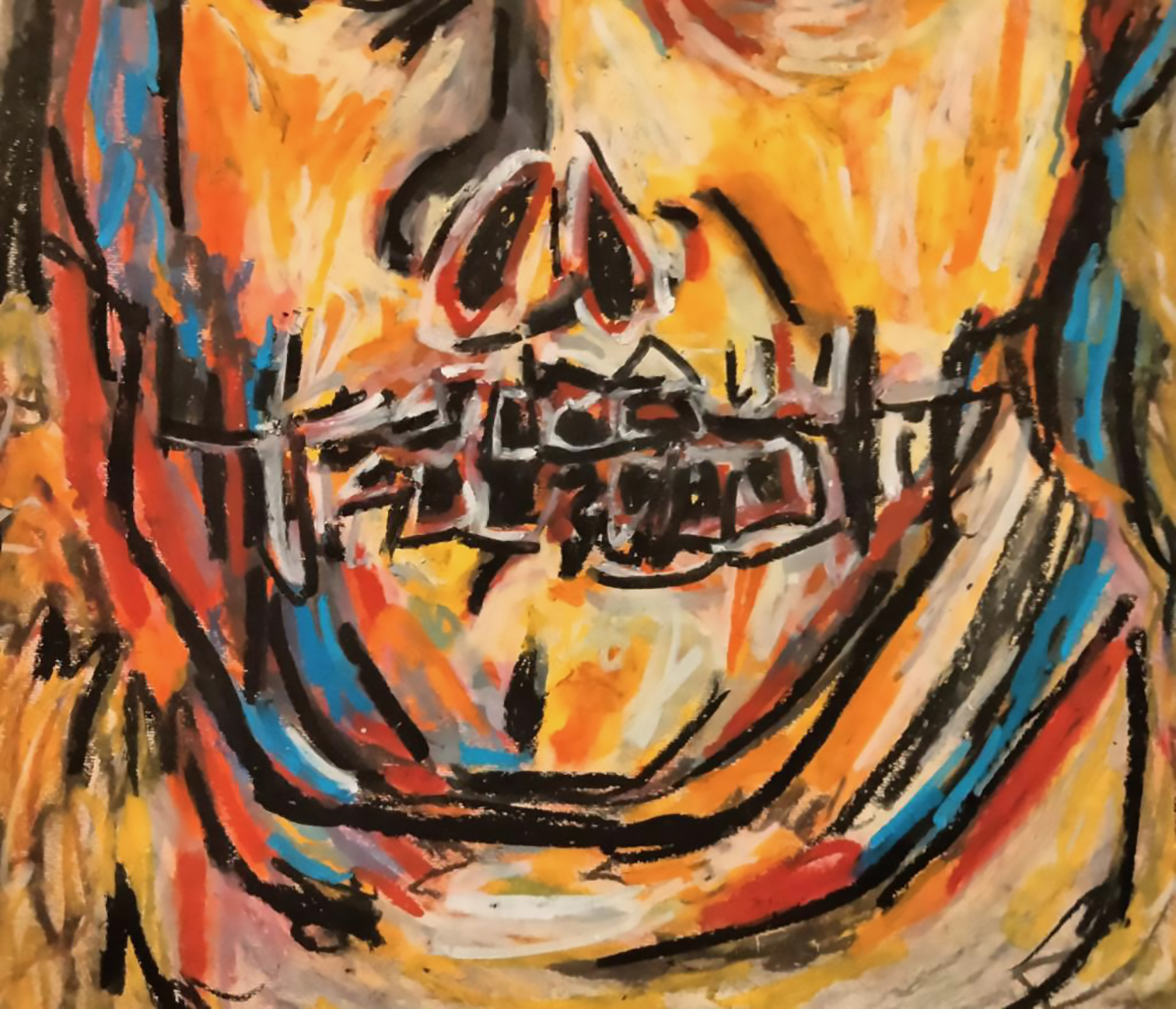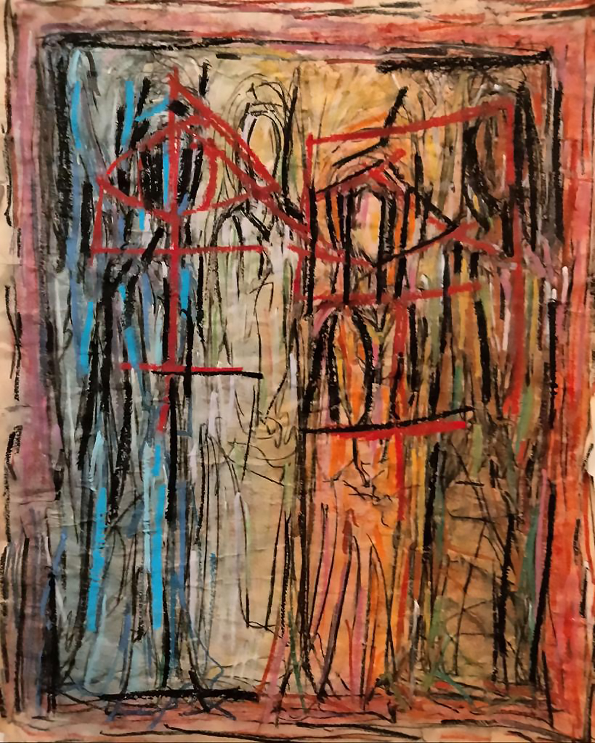 Many of the drawings in this show explore faces. NECC Art professor and gallery coordinator Marc Mannheimer says, “These are passionately charged pieces that speak to the work of Cy Twombly and Jean-Michel Basquiat. These works are much more than surface. Spending time in front of them reveals not only the obvious layers of color and marks but an elicitation of visceral emotion that art has the power to evoke. Denney’s works are a prime example of how visual art can reach us on multiple levels.”