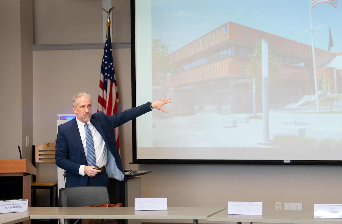 - President Glenn presents history of the Lawrence Campus.