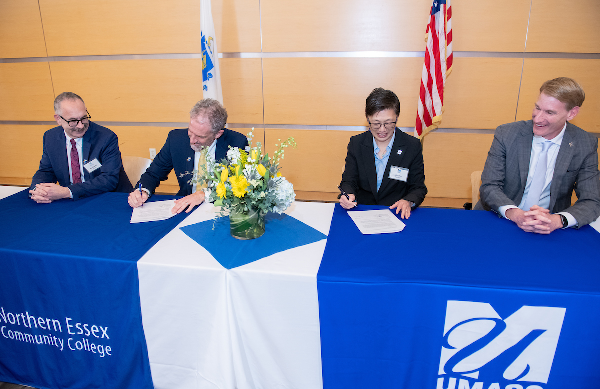 UMass Lowell Chancellor Julie Chen and Provost Joe Hartman joined President Lane Glenn and Northern Essex Provost Paul Beaudin on the NECC campus to formally sign the agreement on Monday, February 27. “The world is changing. And we’re recognizing that the pathways to education are also changing,” said Chen. “We know that Northern Essex is a key piece of this ecosystem and a partner for us because NECC provides that critical, early support.”