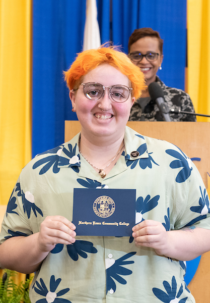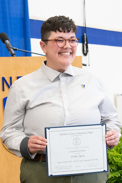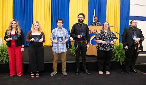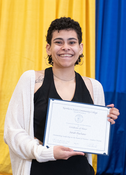 Haverhill, MA (June 5, 2023) – Graduating Northern Essex Community College students were honored for their achievements inside and outside of the classroom at this year’s annual Awards Convocation. The May 9th ceremony was held in the Northern Essex Sport and Fitness Center on the Haverhill Campus. Family and friends were invited to celebrate the honorees and enjoy refreshments following the program.