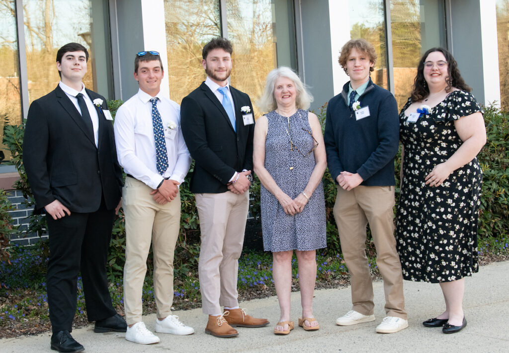 (Left to right) Aram Ozoonian, Kade Masselli, Elijah Contrino, Professor Pam Donahue, Nicolas Leonard, Sara Difiore