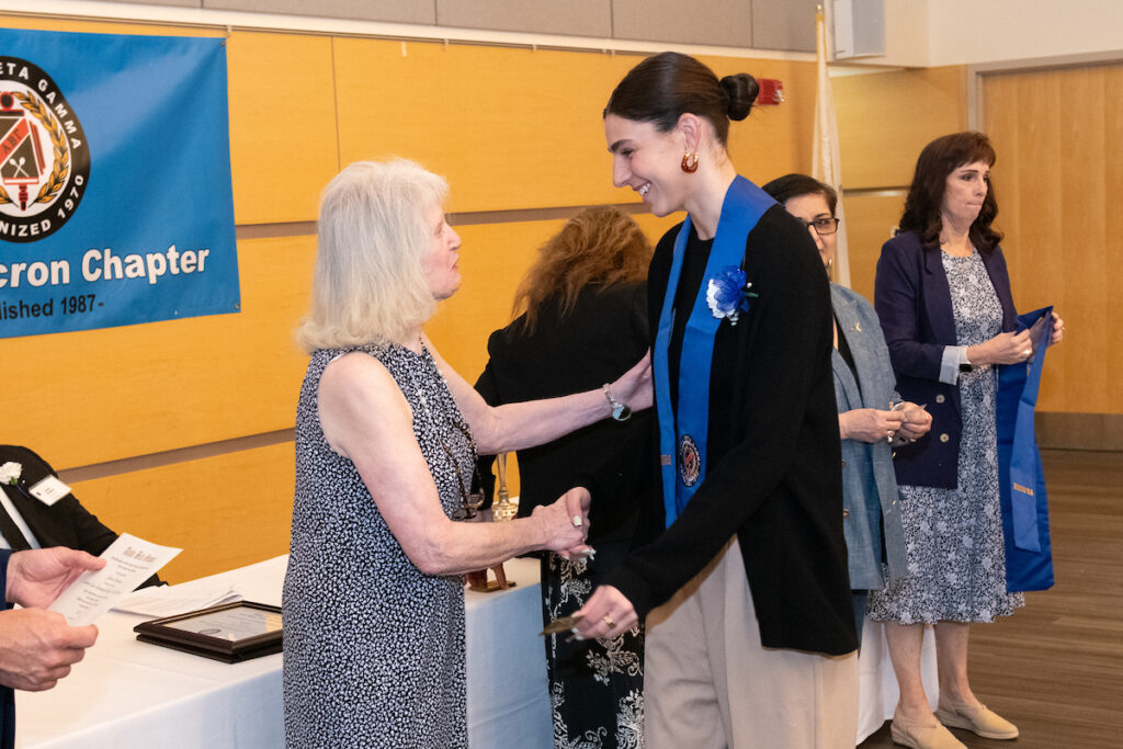 Haverhill, MA (April 23, 2025) — Northern Essex Community College business students were recognized for academic excellence and leadership at the 38th annual induction and awards ceremony of the Beta Omicron Chapter of Alpha Beta Gamma. ABG is an international honor society established to recognize and encourage scholarship among two-year business and professional college students. Few chapters have matched the longevity of NECC’s Beta Omicron Chapter, which has won over 117 National Awards, including 91 student essay awards and 26 chapter awards.