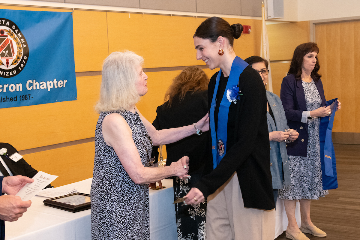 Fifty-eight students were formally inducted into the Beta Omicron Chapter on Wednesday. The ceremony included an introduction of the chapter’s new officers, a speech from Business Transfer student Lauren Donovan, and the presentation of the honor society’s sashes.