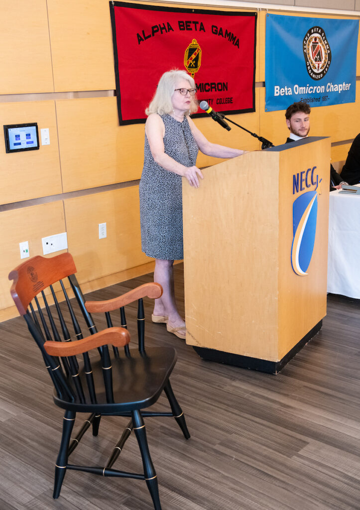This year’s ceremony held special significance as it was the last Donahue. She established the NECC Chapter of ABG 38 years ago. After 51 years as a member of the NECC faculty, she is retiring at the end of the spring semester.