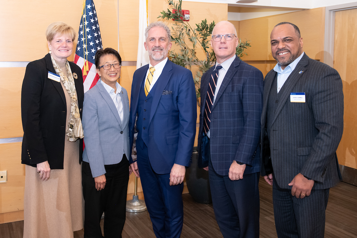 Trustee Jen Borisolow, chen, glenn, keenan and trustee jouel gomez stand smiling at the camera