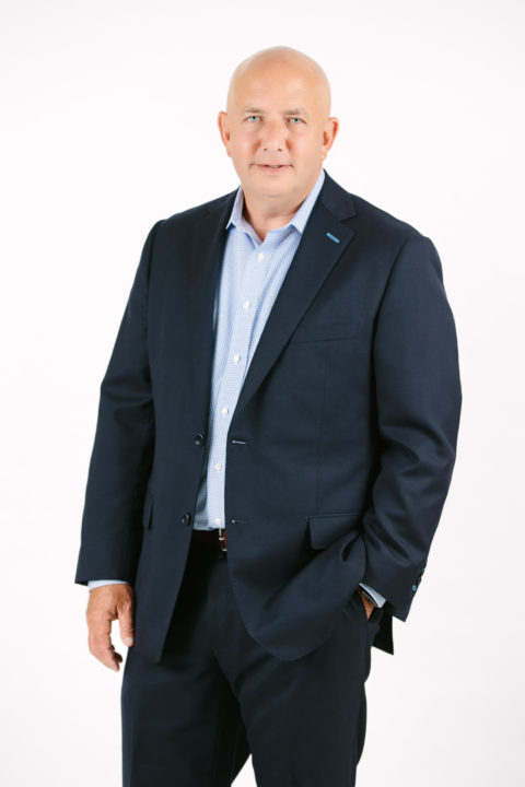 michael stads in dark suit and light blue shirt smiling at camera