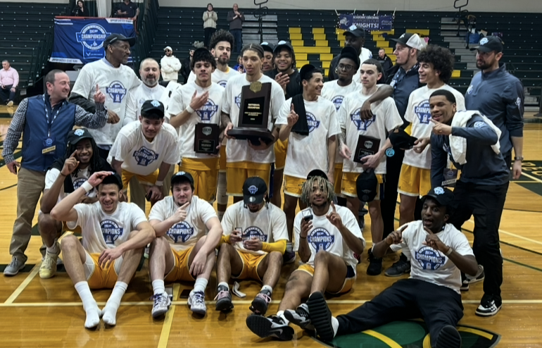 Herkimer, NY (March 14, 2026) — The Northern Essex Community College men’s basketball team has made history: they are the first college athletic team to win a national title. The Knights defeated Dallas Richland College (Dallas, TX) 68-62 Saturday night to claim the NJCAA DIII National Championship. The win was also a program-record-tying 33rd win of the season.